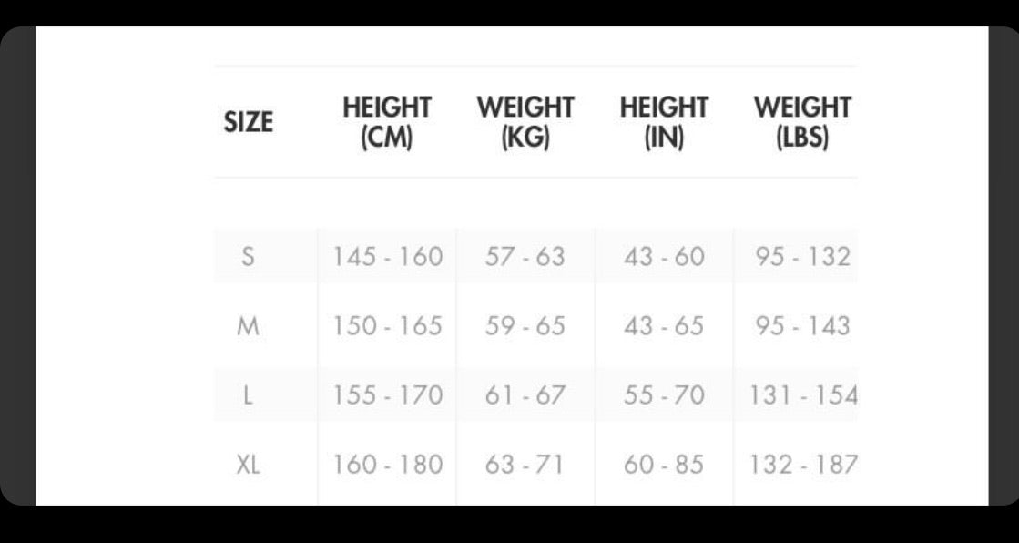 Please refer to sizing chart