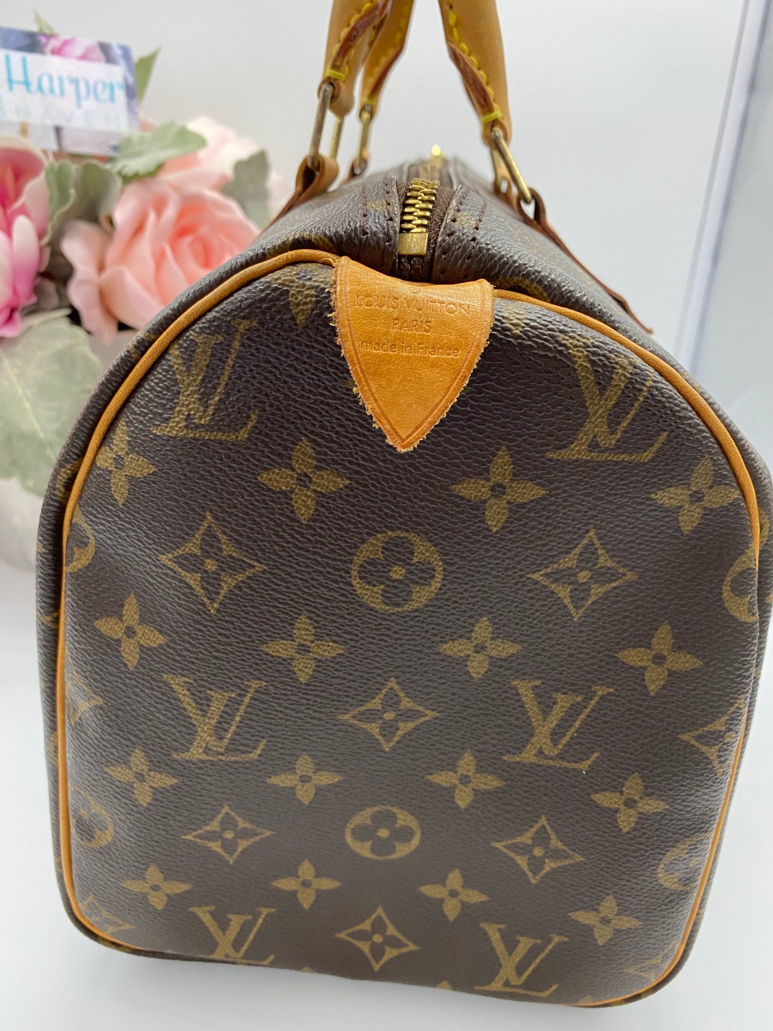 Dark isolated markings on inside of one of the handles, does not take away from bag when carried. Can be repaired if necessary!
