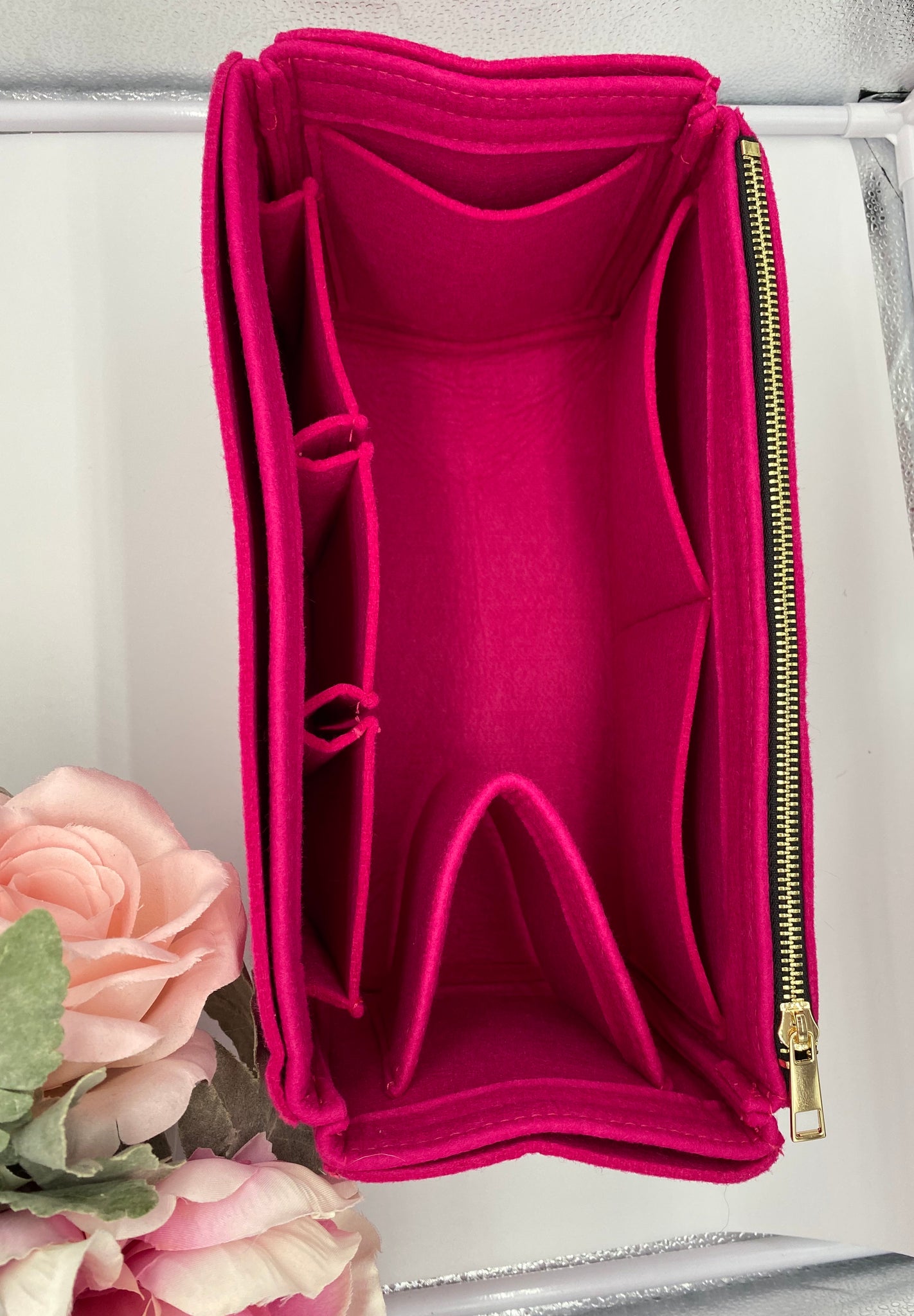 Photographed with fuchsia insert inside, available for purchase for additional $30 (11 pockets, 1 with gold zipper closure)